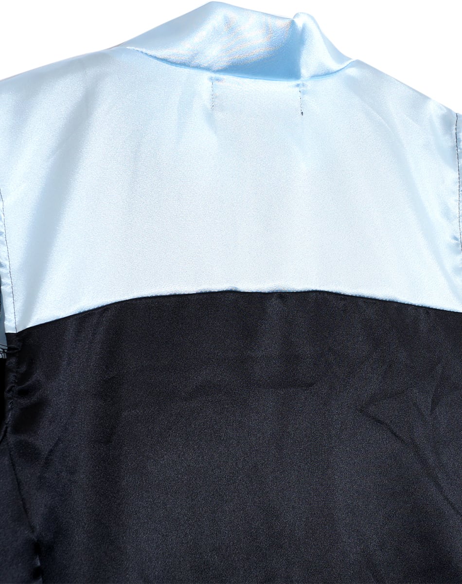 フロントを大胆に走るジップが都会的なムードを演出し、ブラック×ライトブルーのコントラストが未来的な存在感を放ちます。