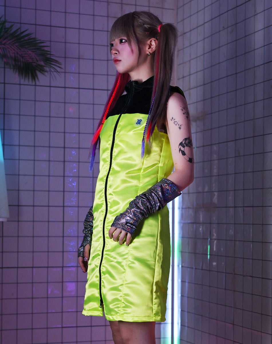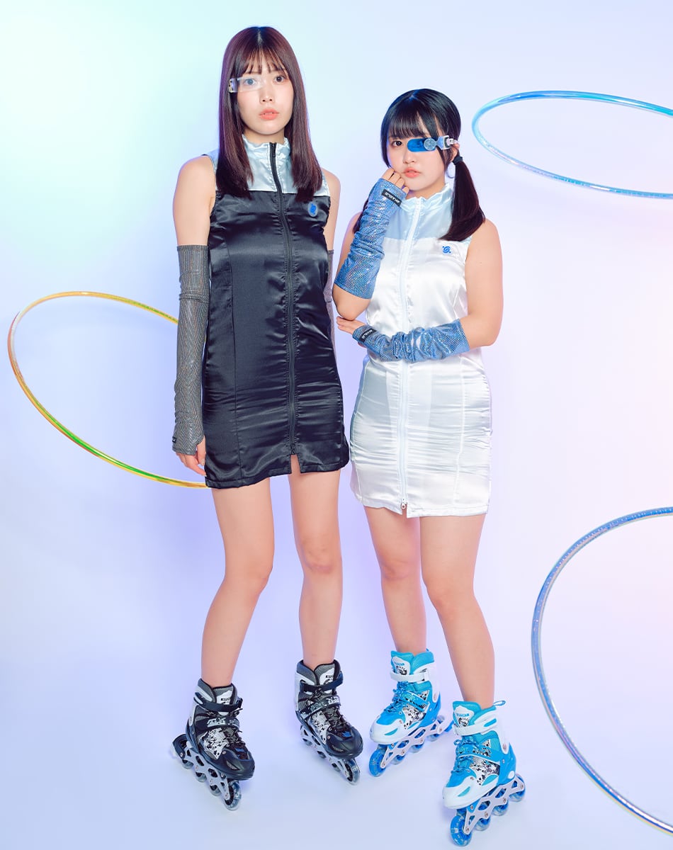 左胸にはAIKA ELECTRONICSのシンボルロゴをワンポイントで配置し、ブランドらしいサイバーガーリーなエッセンスをプラスしました。