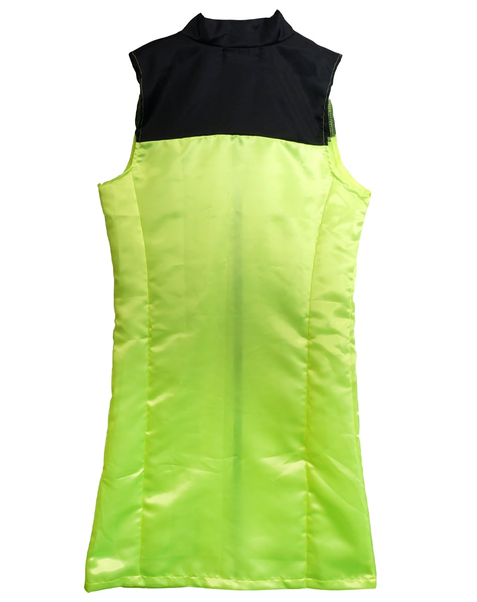 光沢感のあるサテン切り替えと、シャープなジップラインが印象的な 「NEBULA ZIP ONE-PIECE」。