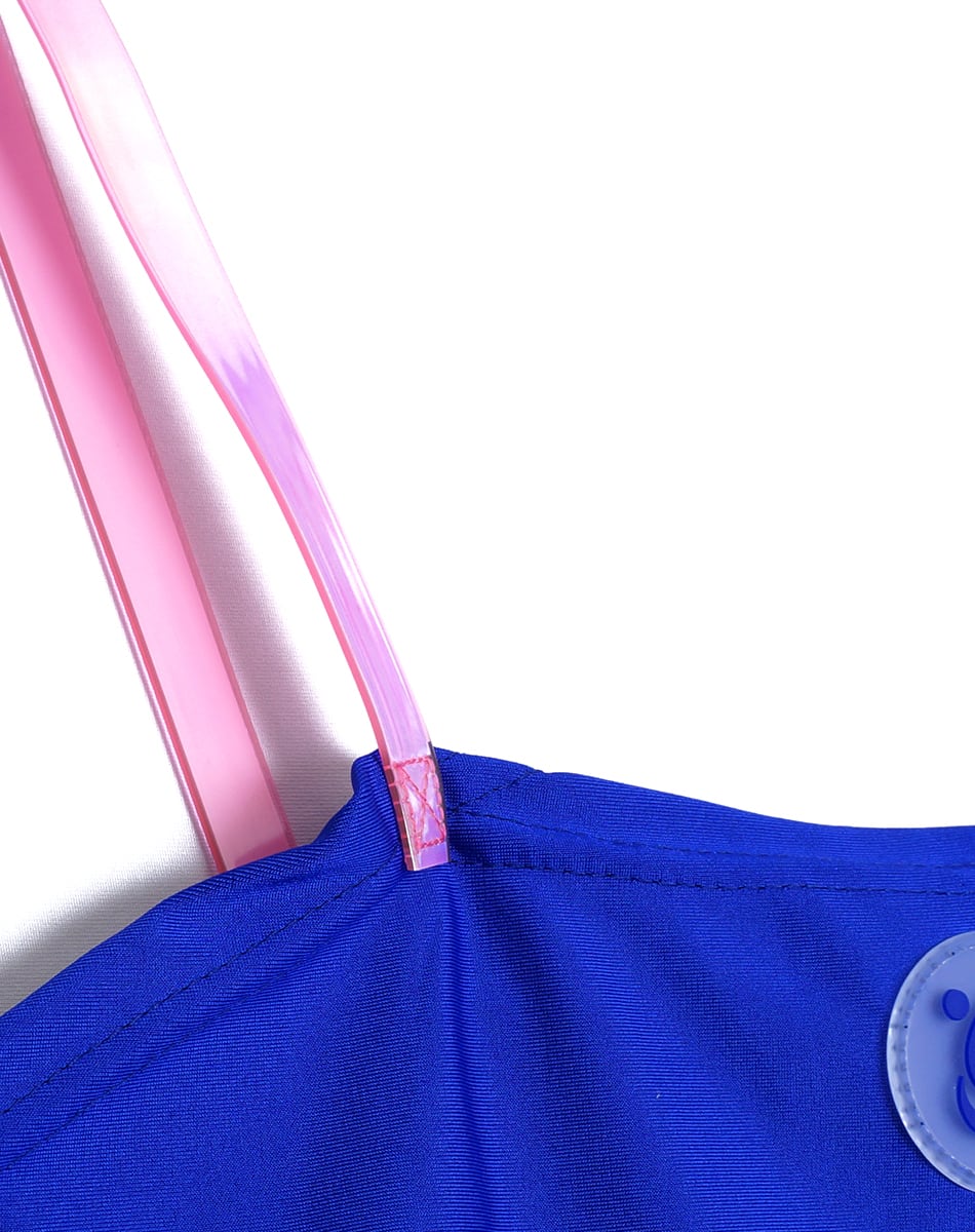 フィット感のある光沢ストレッチ素材を使用し、ボディラインをすっきりと見せながら、ポップで華やかな存在感を放ちます。