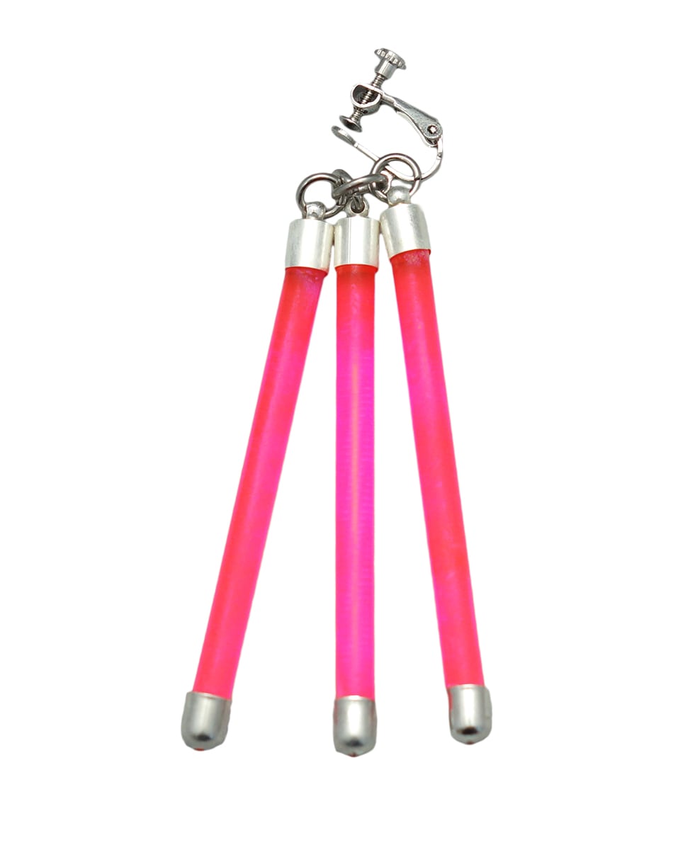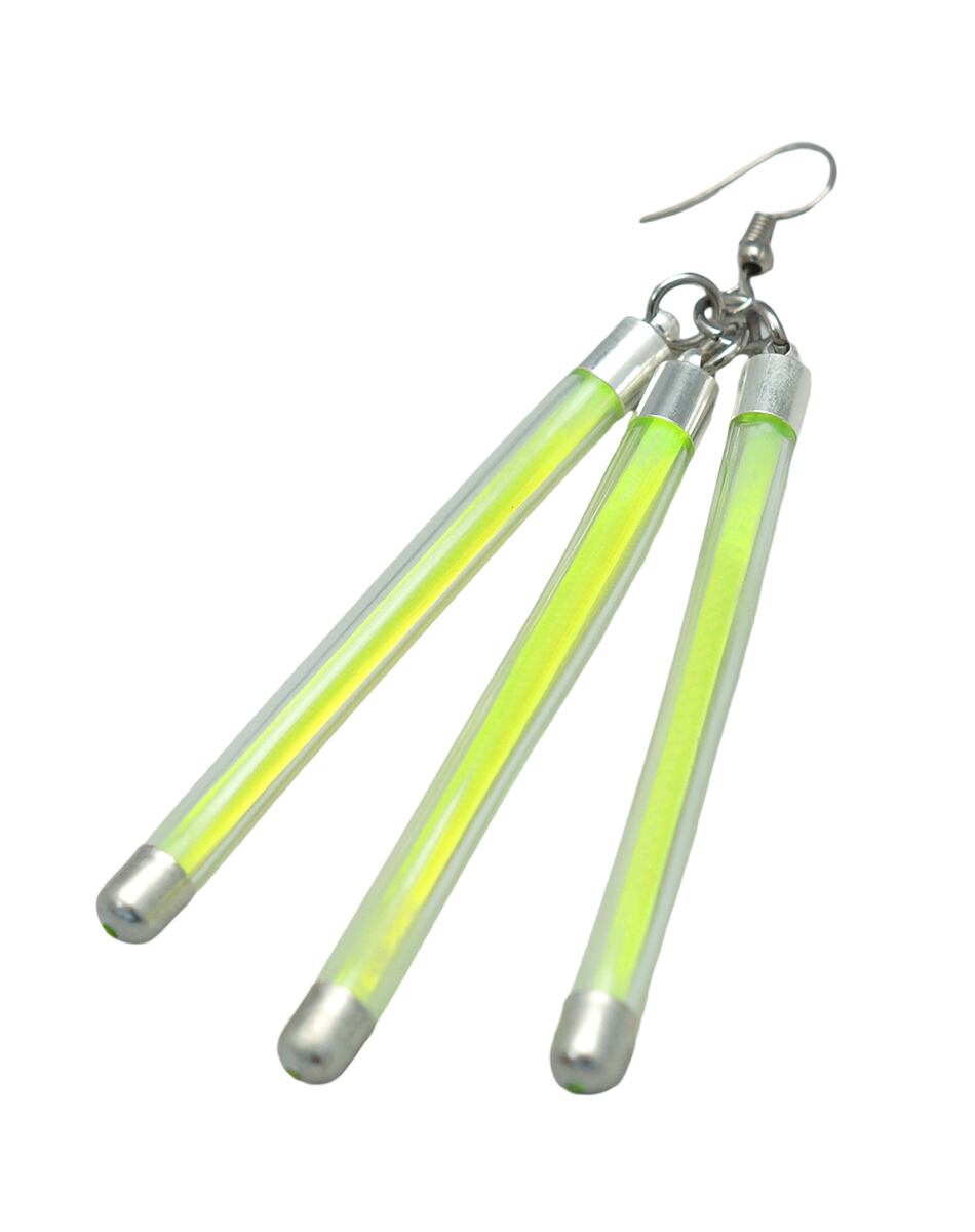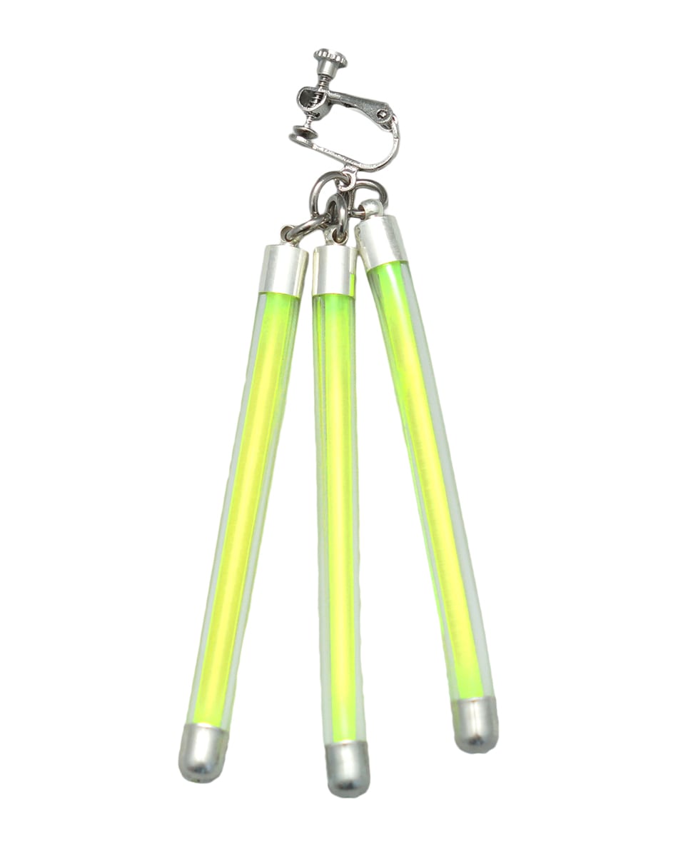 蛍光チューブを思わせるネオンバーと、無機質なシルバーパーツを組み合わせたLabピアス・イヤリングシリーズ。