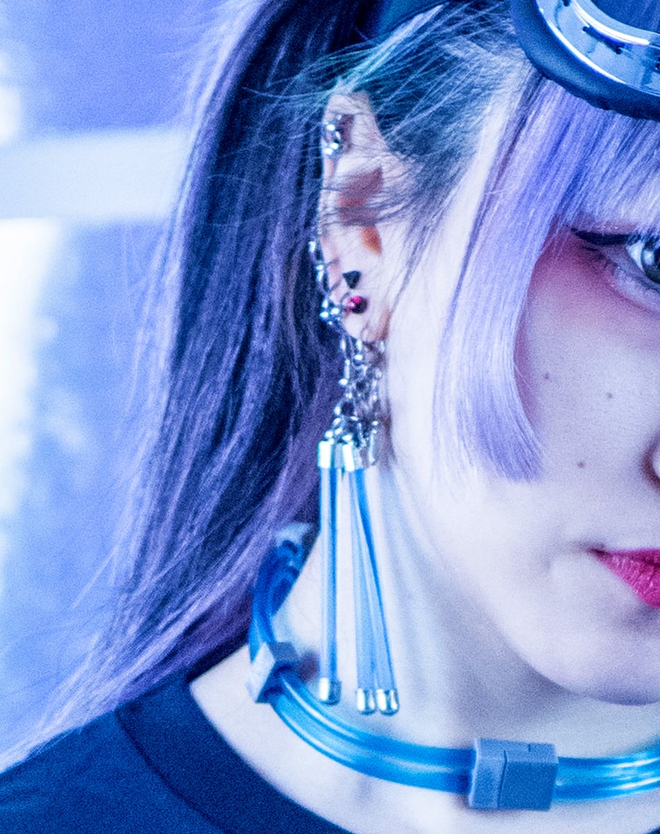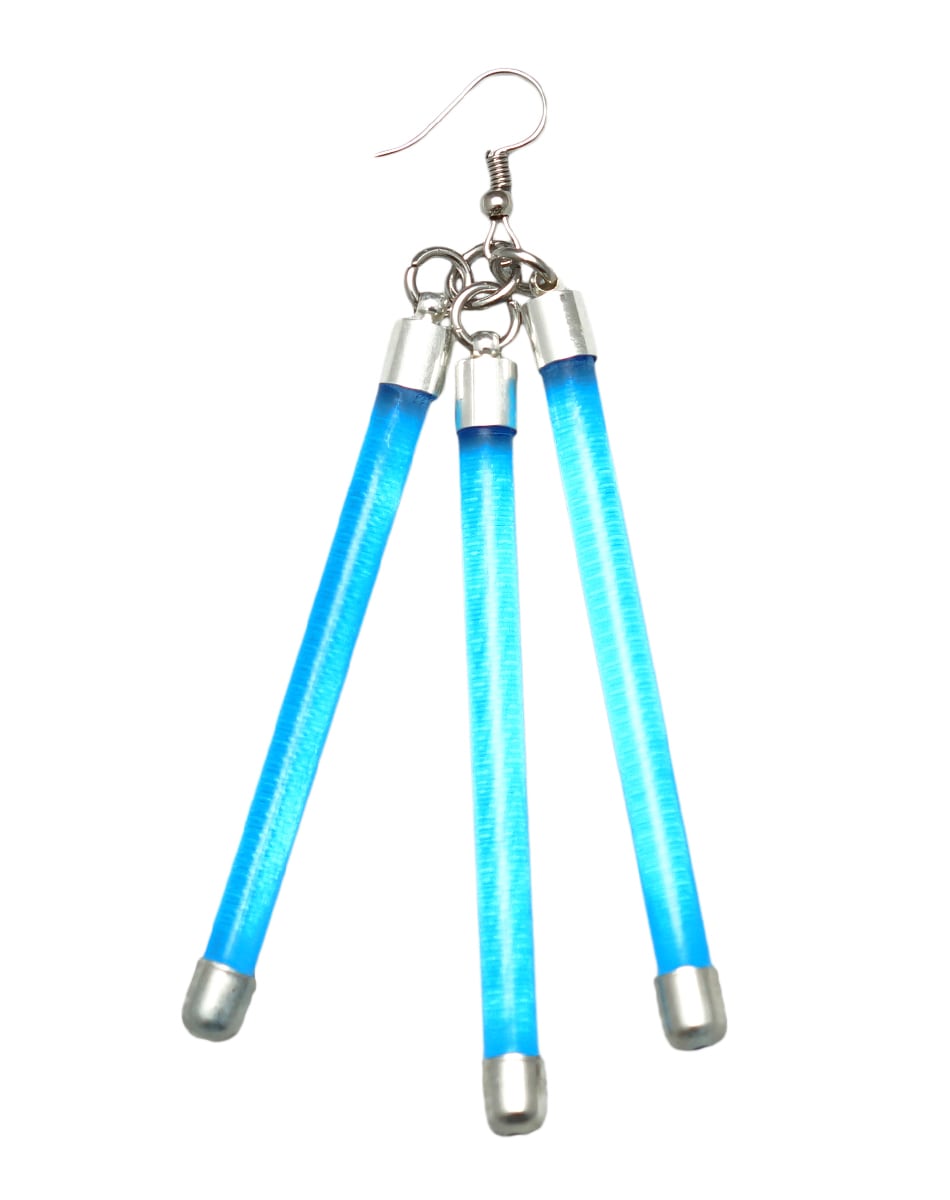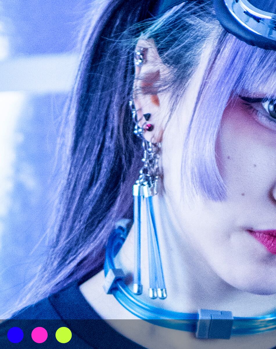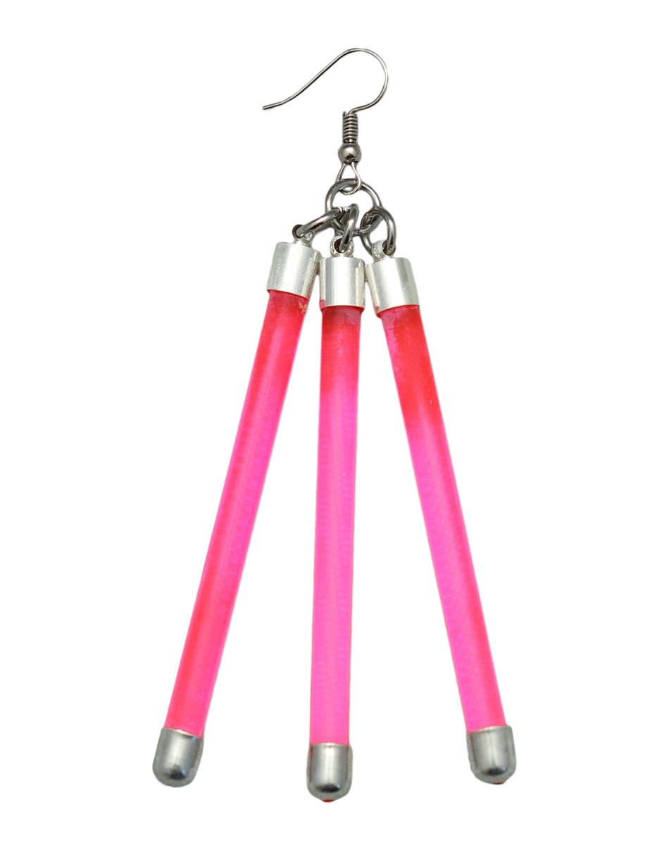 蛍光チューブを思わせるネオンバーと、無機質なシルバーパーツを組み合わせたLabピアス・イヤリングシリーズ。