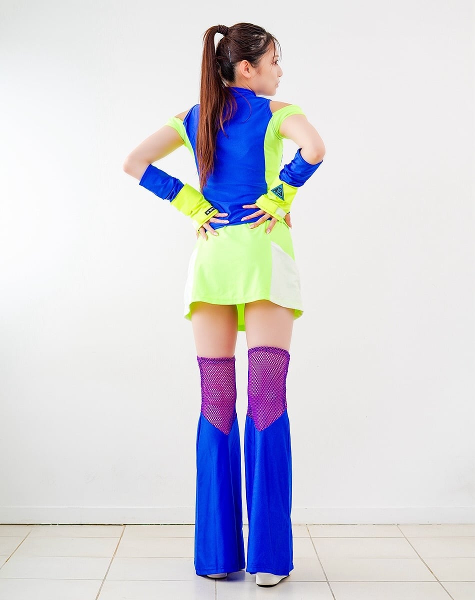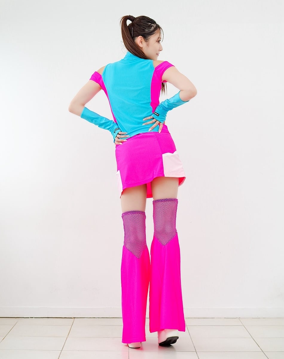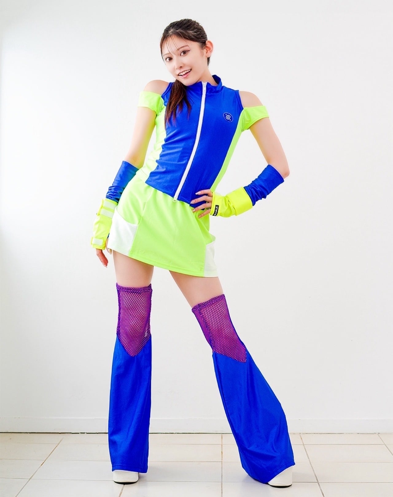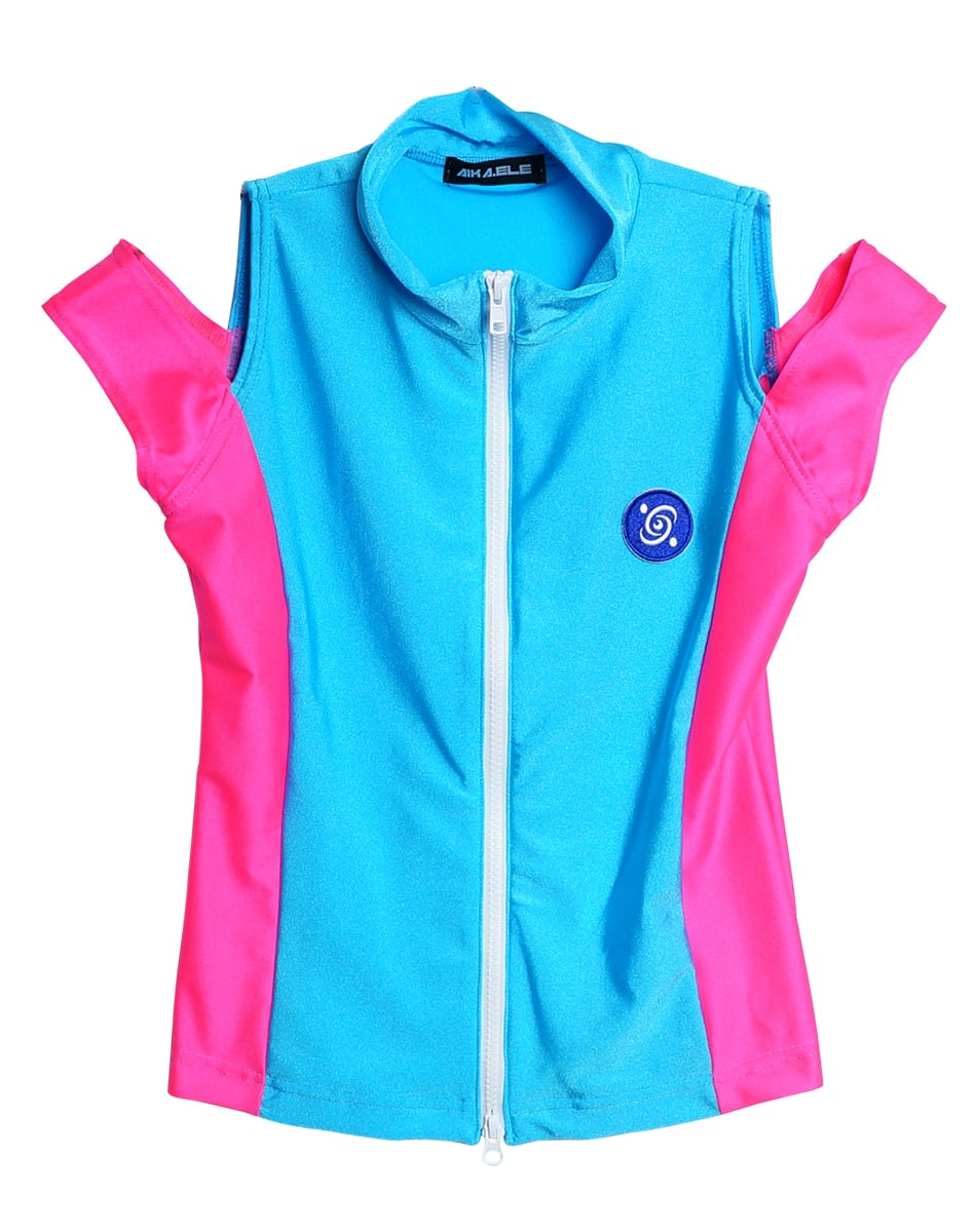 キュートとクールを混ぜ合わせた近未来系のサイバーギア、腕のワンポイントがクールなノースリーブZIPトップです。