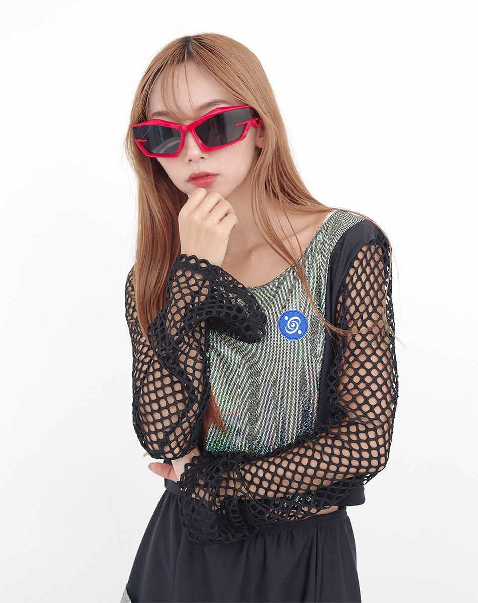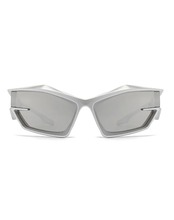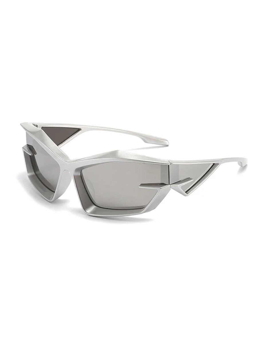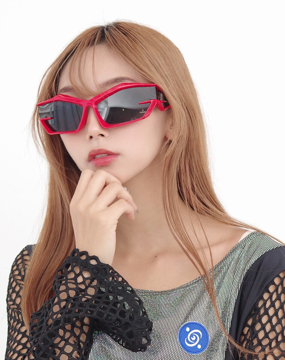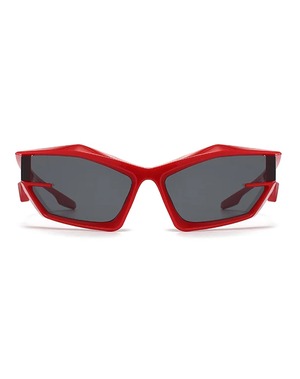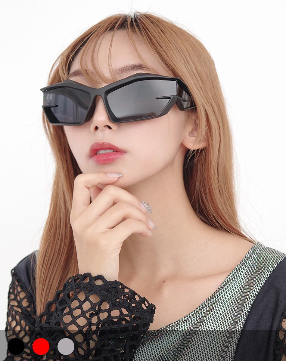 シャープに削ぎ落とされたエッジラインと、近未来的なワイドフレームが印象的なブロックシルエットサングラス。