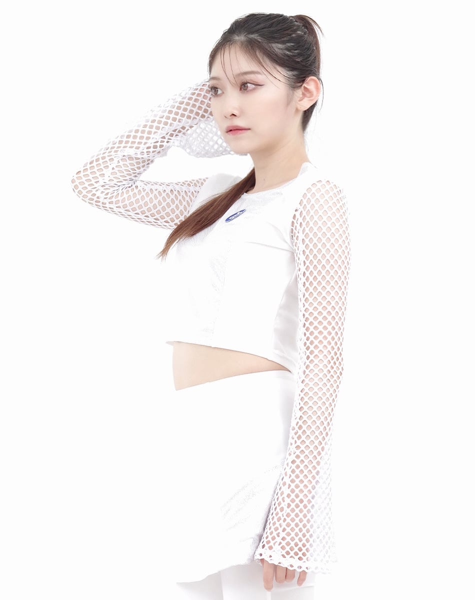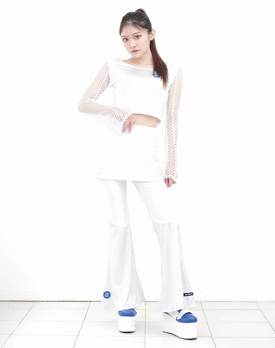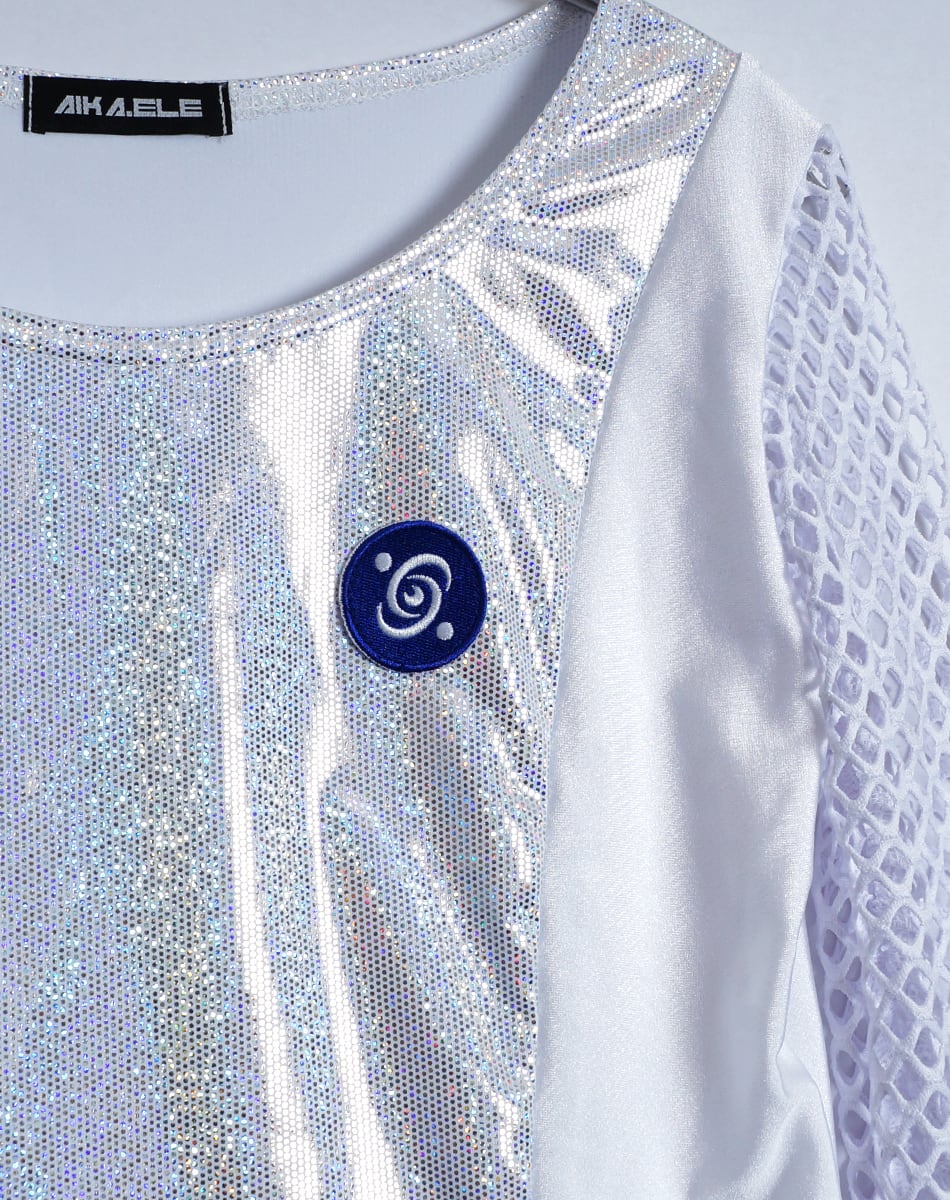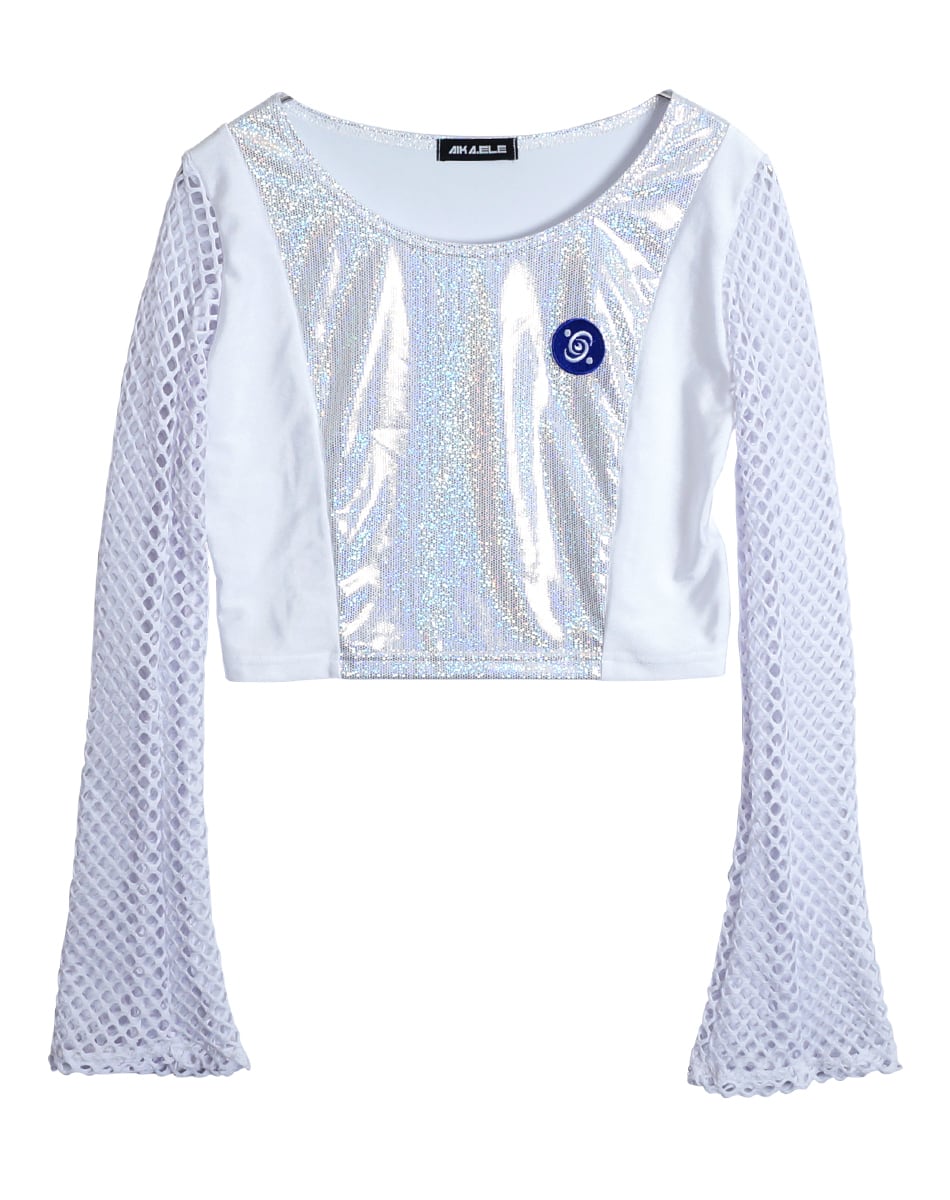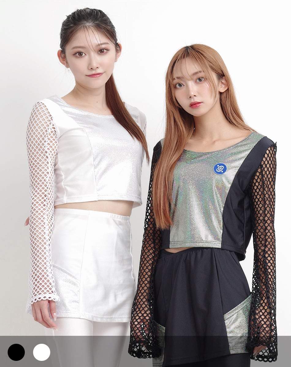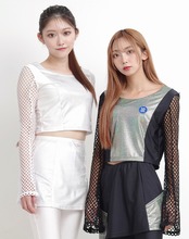 キュートとクールを混ぜ合わせた近未来系のサイバーギア。スリーブがネット状になっているので夏でも着回し可能な一枚です!