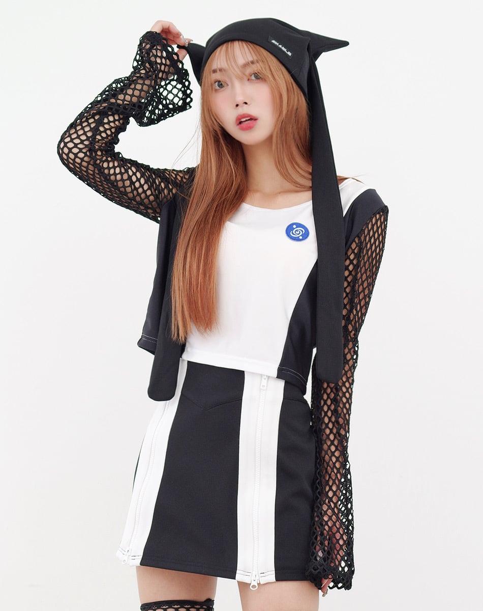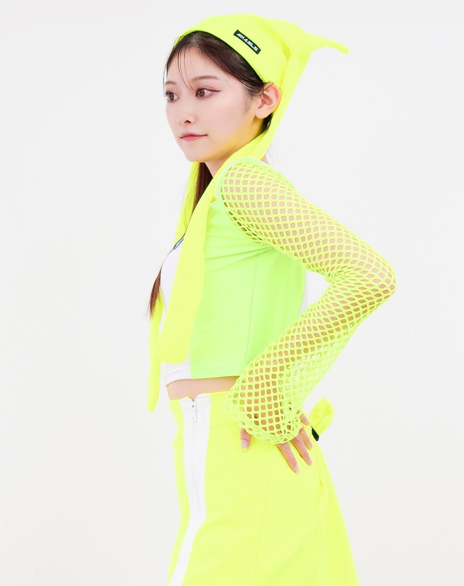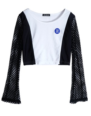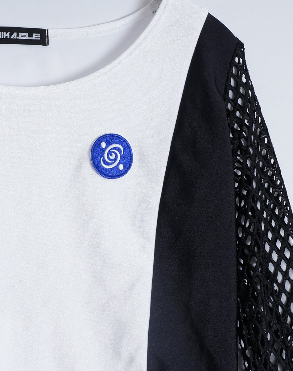 キュートとクールを混ぜ合わせた近未来系のサイバーギア。スリーブがネット状になっているので夏でも着回し可能な一枚です!