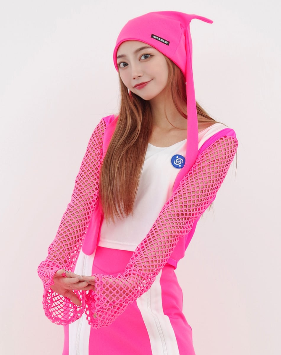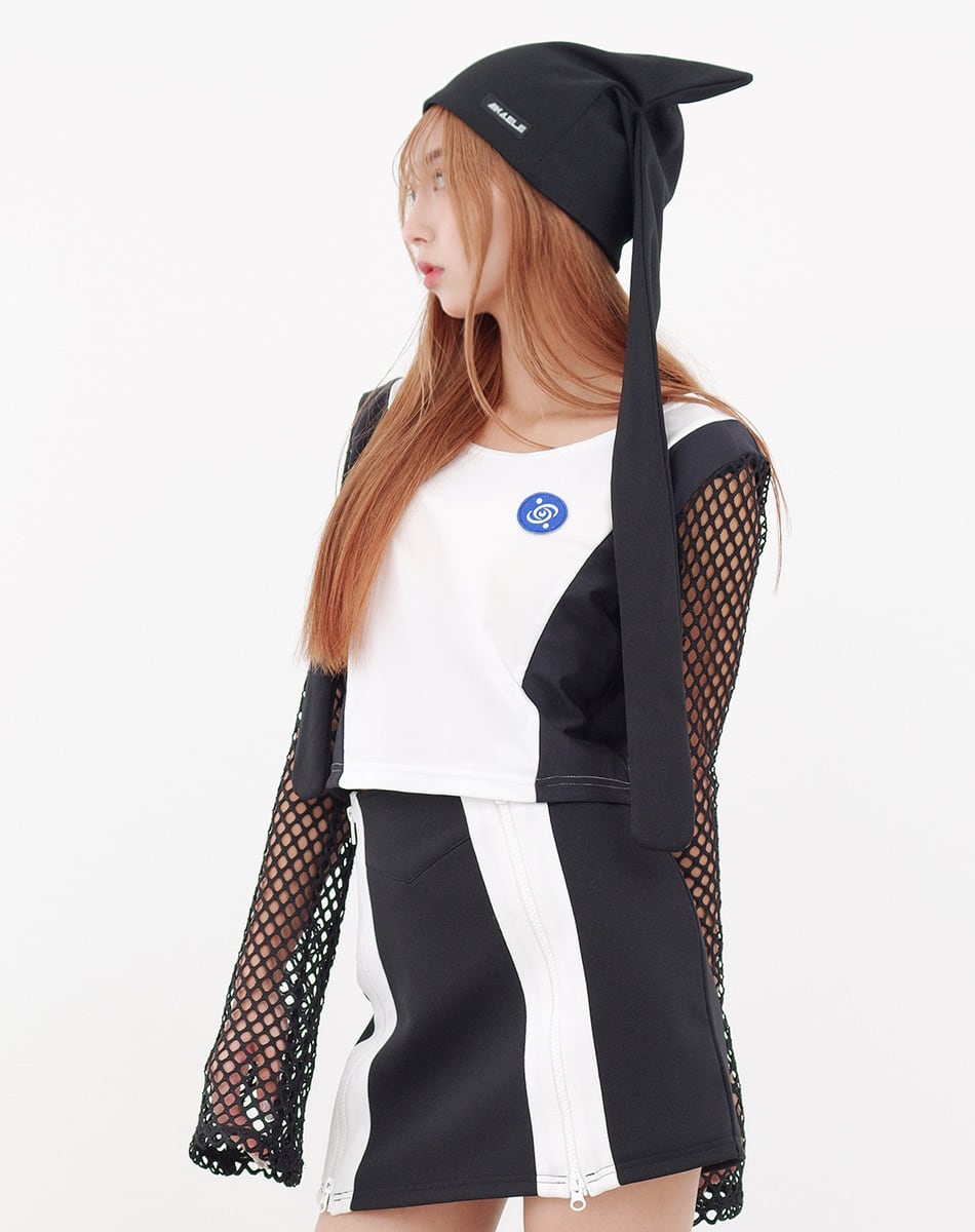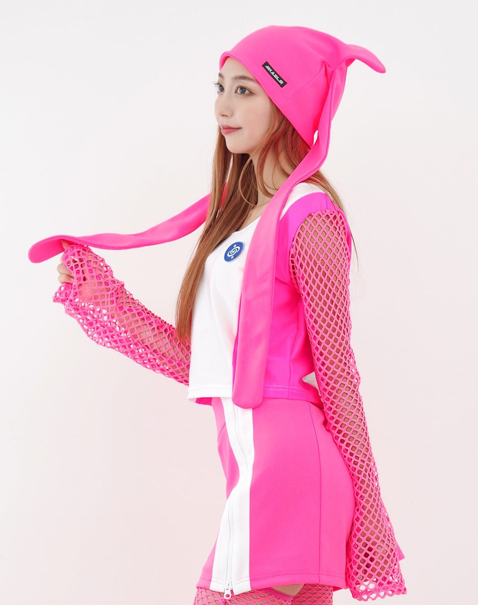 キュートとクールを混ぜ合わせた近未来系のサイバーギア。スリーブがネット状になっているので夏でも着回し可能な一枚です!