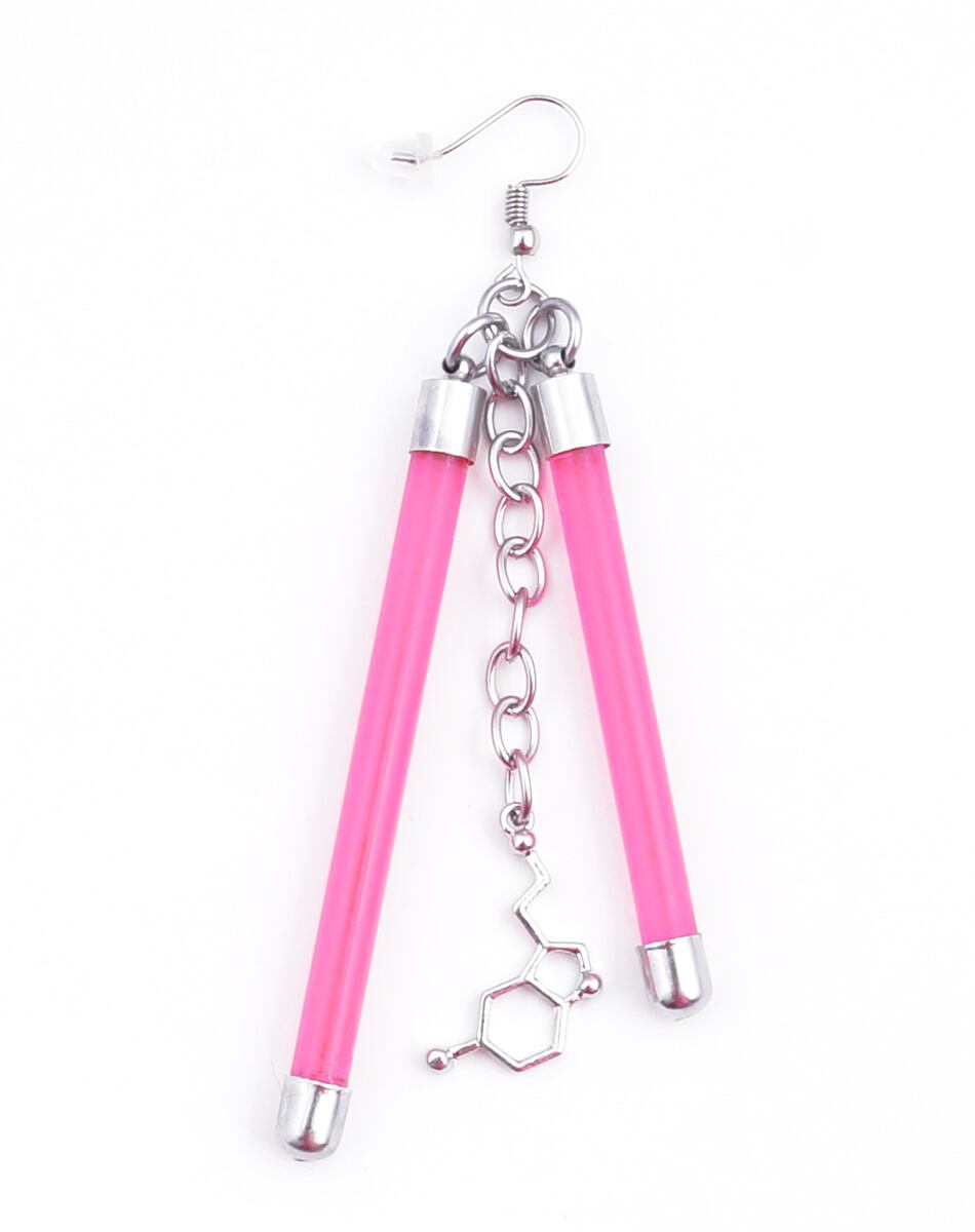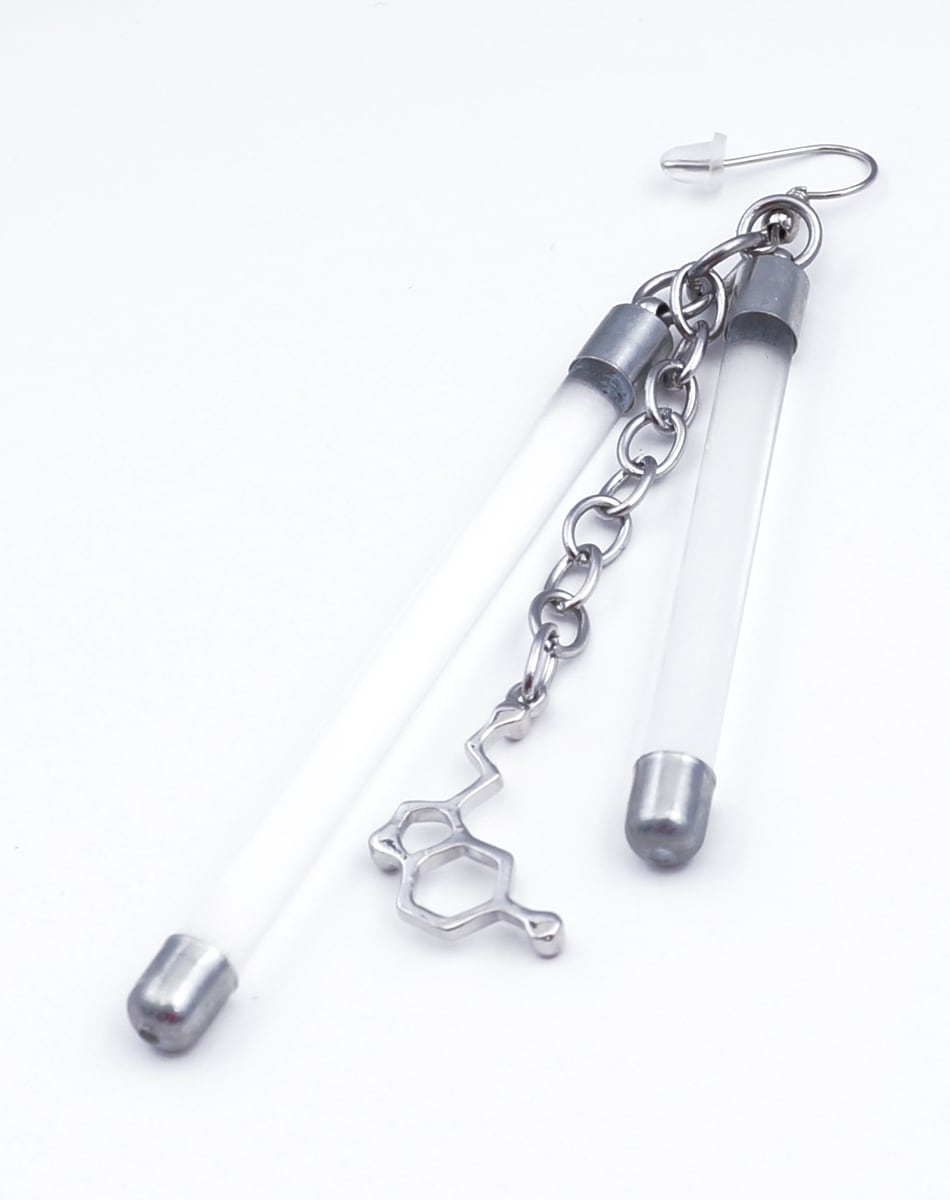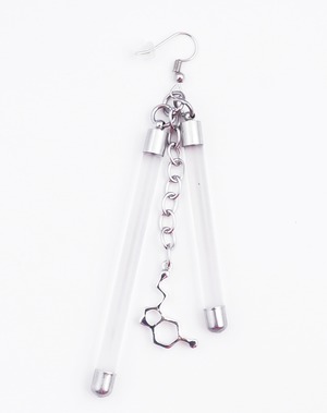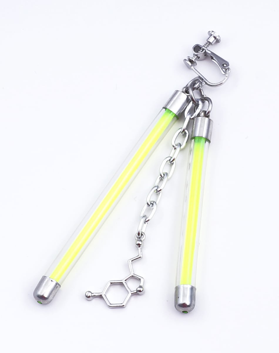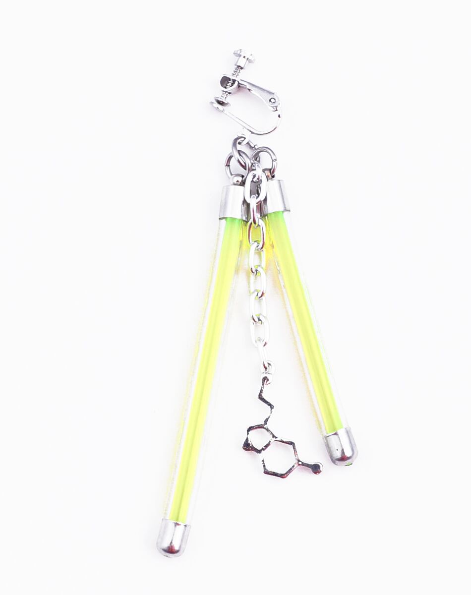 蛍光チューブを思わせるネオンバーと、無機質なシルバーパーツを組み合わせたLabピアス・イヤリングシリーズ。