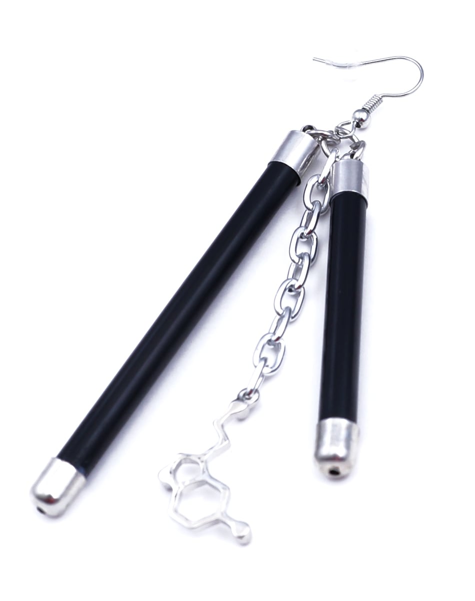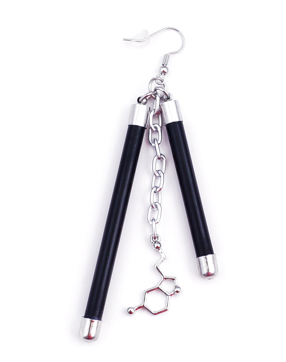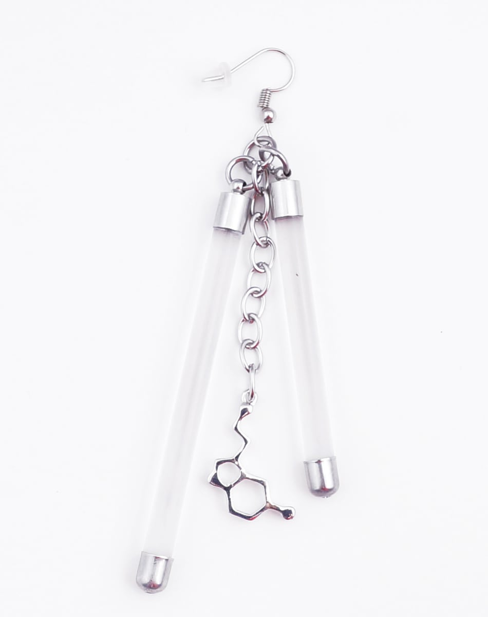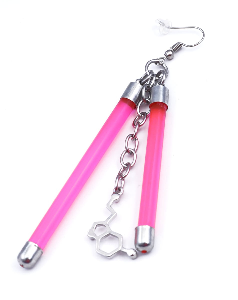 蛍光チューブを思わせるネオンバーと、無機質なシルバーパーツを組み合わせたLabピアス・イヤリングシリーズ。
