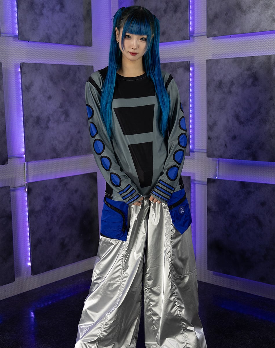 近未来のファッションをテーマにしたサイバーギアはサイバーファッションとしてもストリート系のアイテムとしても合わせやすいコーデライクなロングTシャツです♪